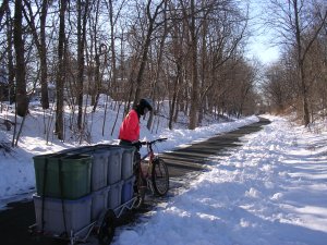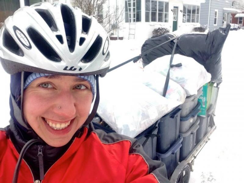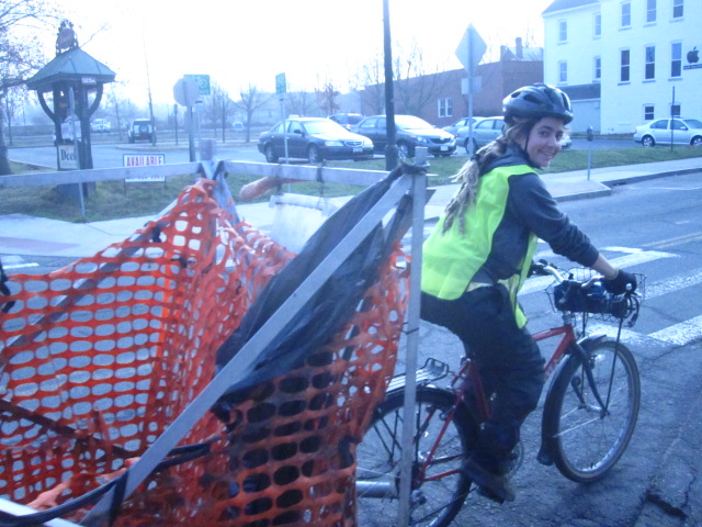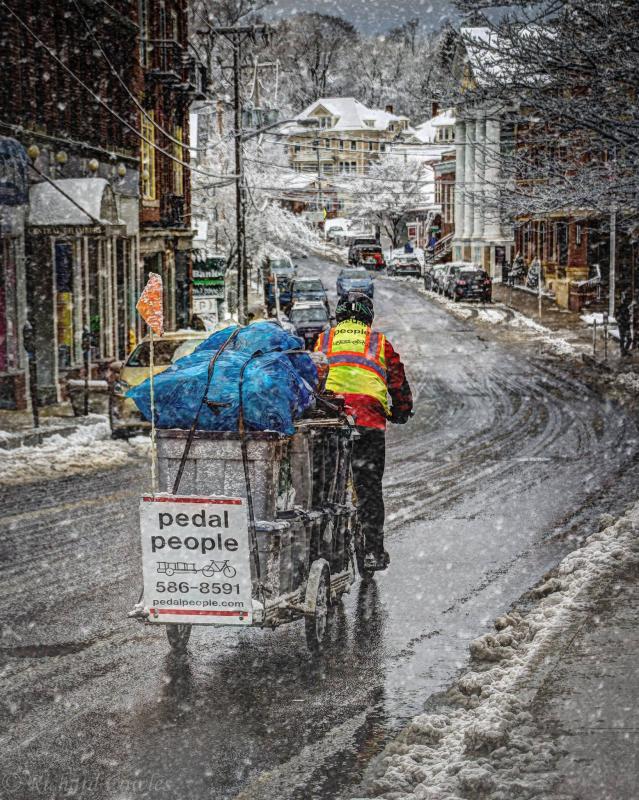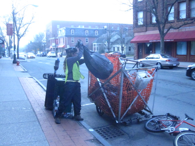 Annie doing downtown trash on a winter morning.