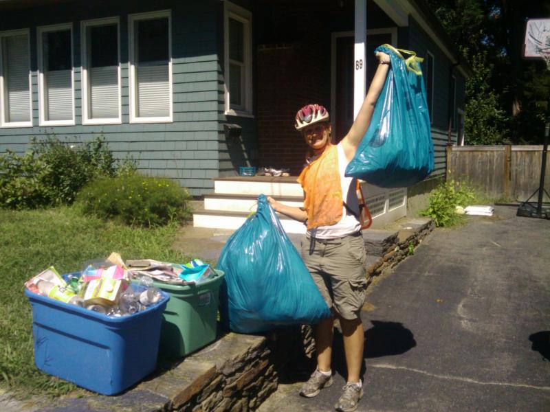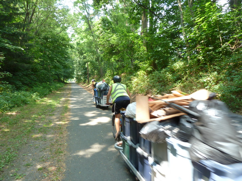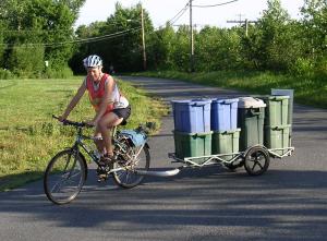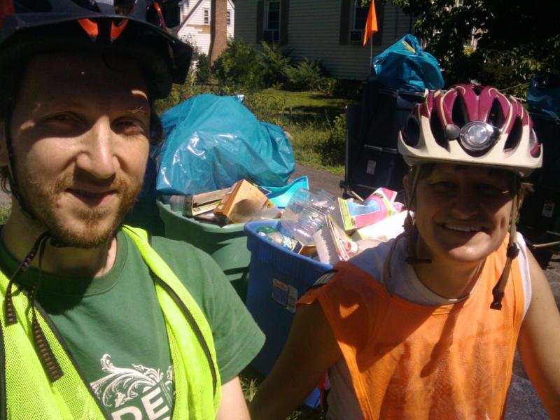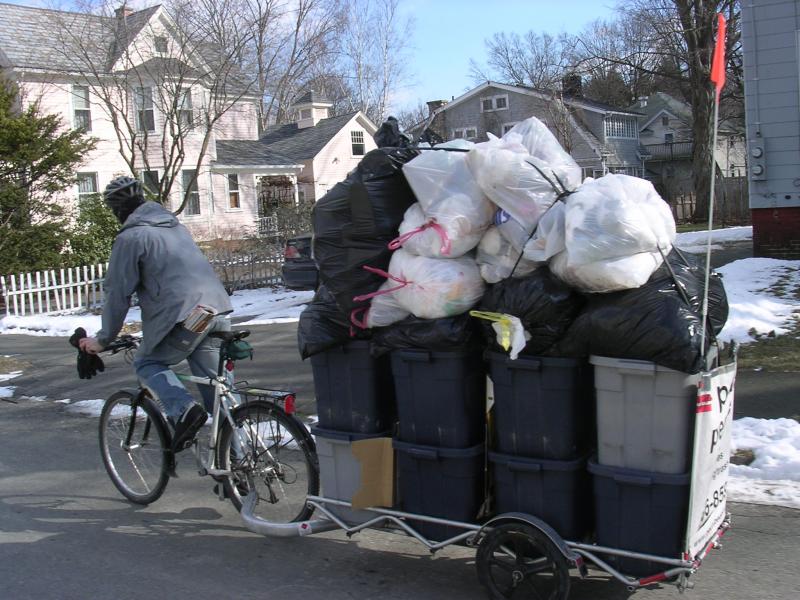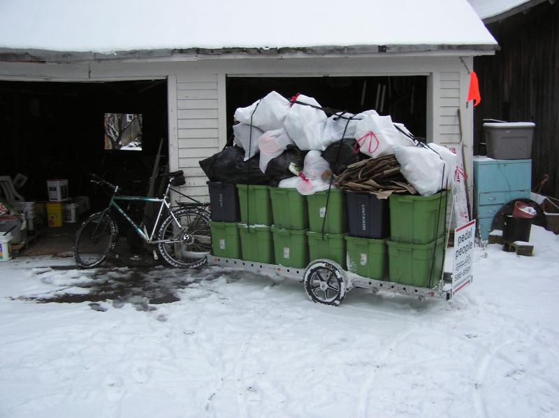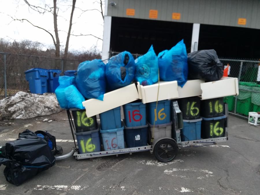 Ben hauling a large load of recycling and trash.