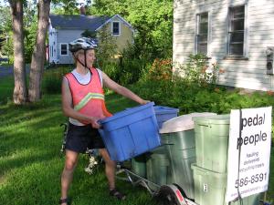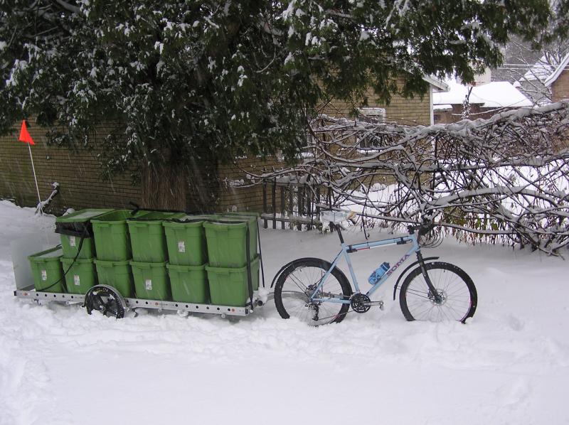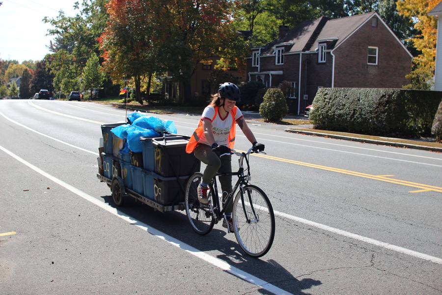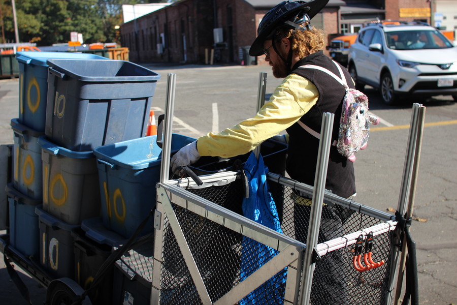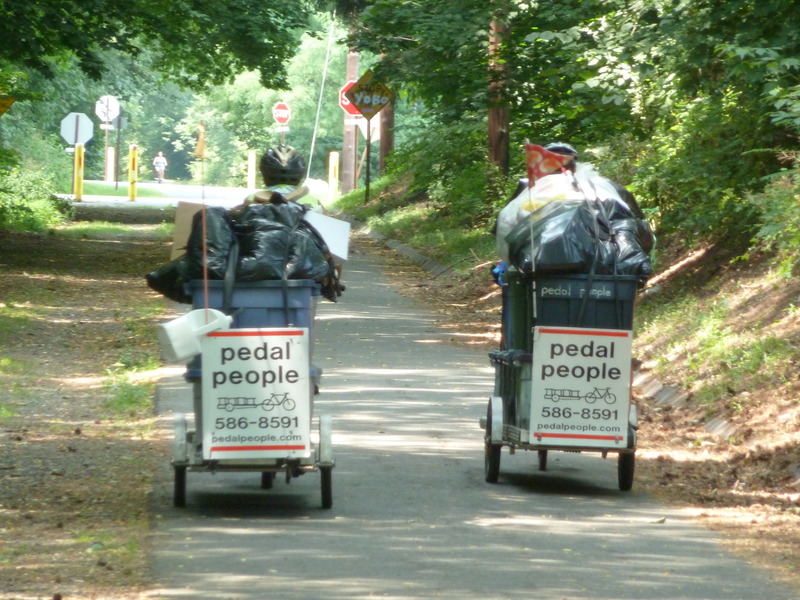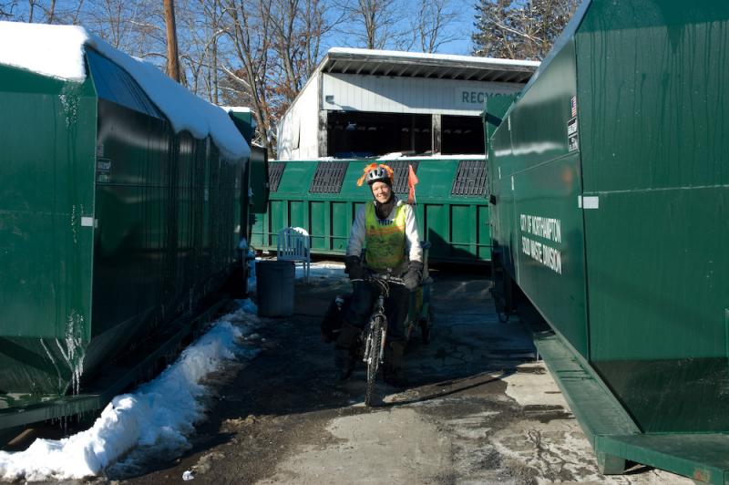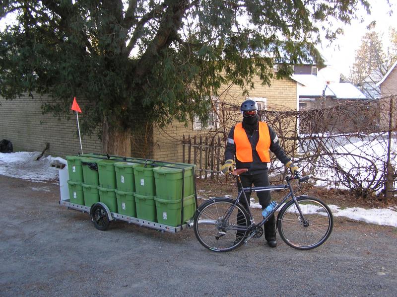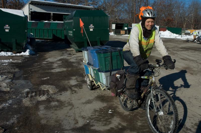 Ben hauling a large load of recycling and trash.