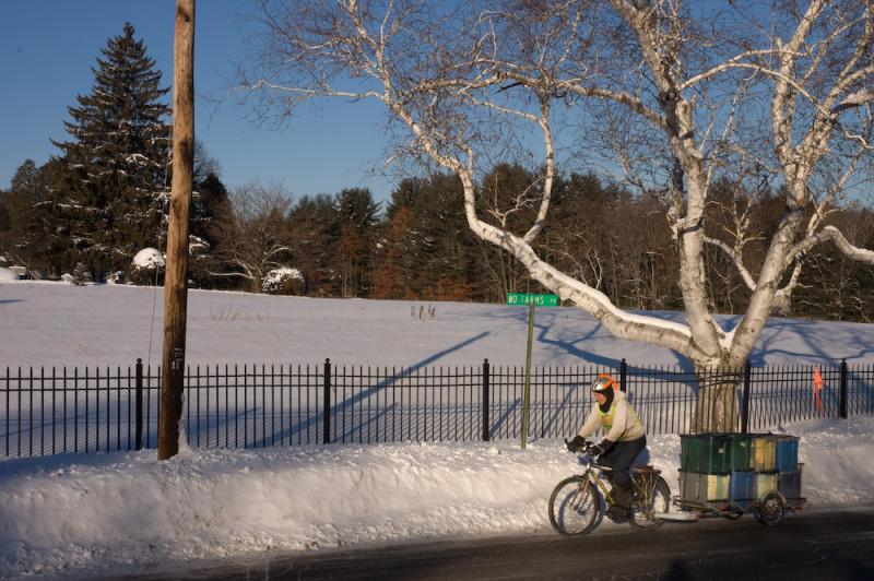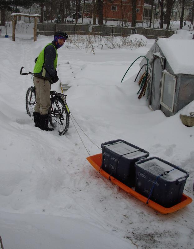 Alex delivers Enterprise Farm shares by sled, January 2011.