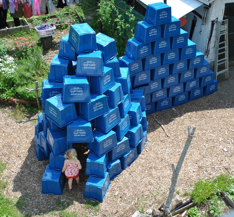 Stella enters the recycling tote castle