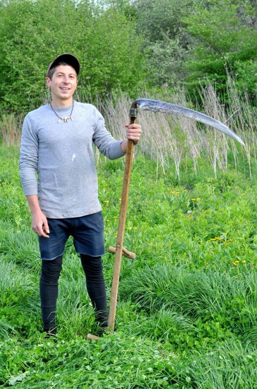 Joel Ruffner with the scythe